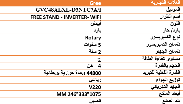 مكيف جري دولابي انفيرتر - 4 طن - بارد فقط - سعة تبريد 44800