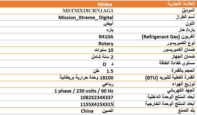مكيف جداري ميديا اكستريم 18 بارد 18100 وحدة