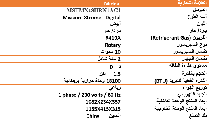 مكيف جداري ميديا اكستريم 18 حار بارد 18100 وحدة