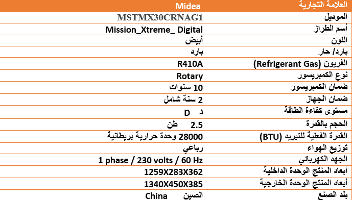 مكيف جداري ميديا اكستريم 30 بارد 28000 وحدة